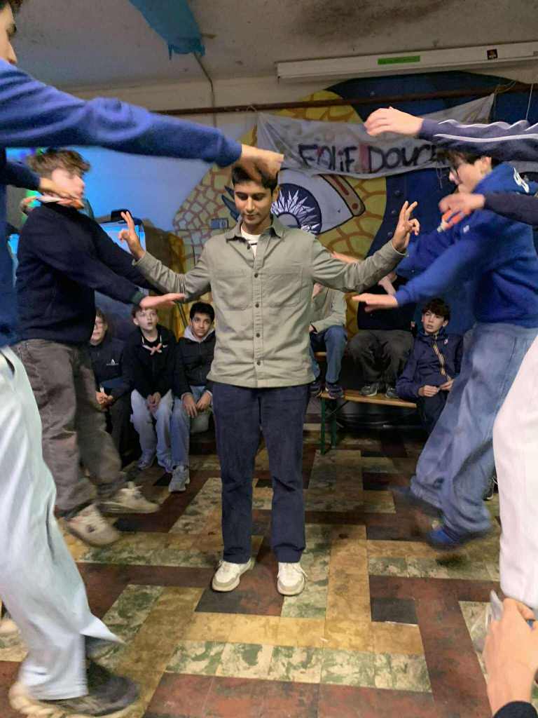 Mais la soirée ne s’est pas arrêtée là ! Une fois bien rassasiés, place aux jeux. Nous avons sorti le célèbre Time’s Up. Entre les mimes improbables 🎭, les indices plus ou moins clairs et les tentatives désespérées pour faire deviner le bon mot avant la fin du chrono, l’ambiance était bien présente. Les Dragons se sont également prêtés au jeu des photos de groupe à reproduire : postures improbables et créativité sans limite ont donné lieu à des scènes mémorables. Nous vous laisserons juger par vous même. 📸