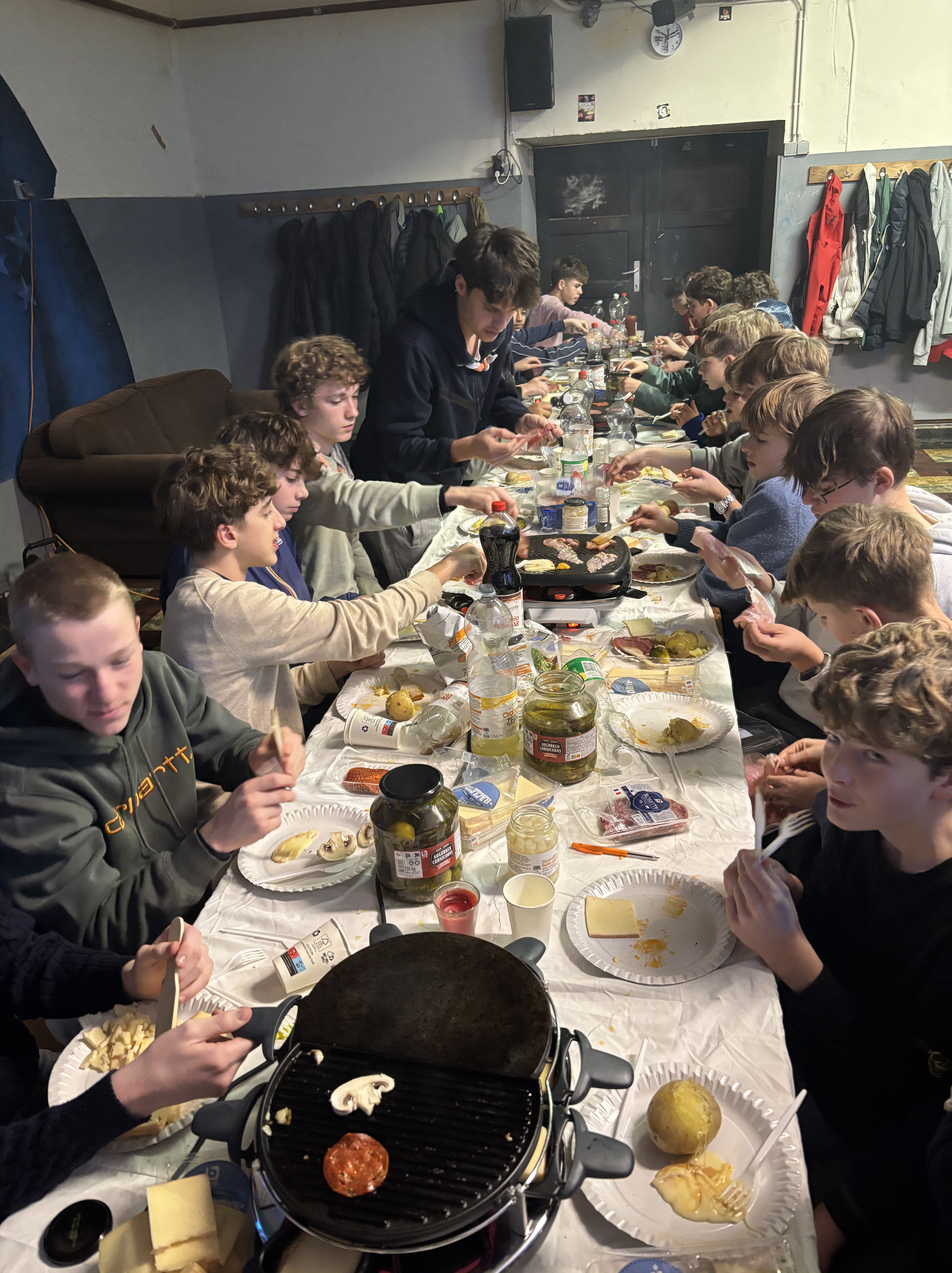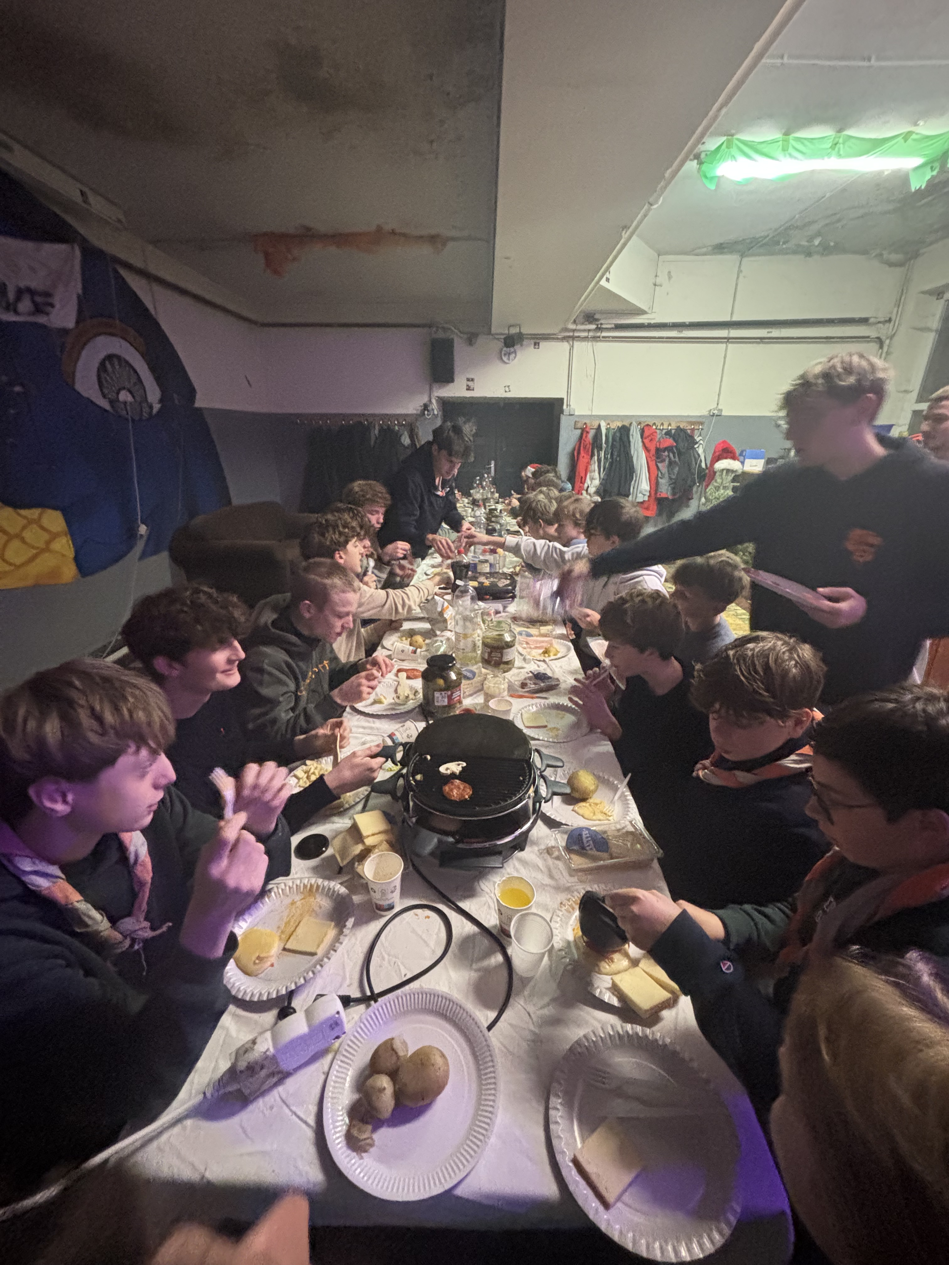 A la place, nous avons préféré faire quelque chose d’innovant et qui met tout le monde d’accord : une grande soirée raclette 🤯. Dès l’arrivée, l’ambiance était au rendez-vous. Les machines étaient prêtes prêtes à accueillir les assiettes remplie des scouts, les discussions et les rires se mélangeaient. Chacun a pu se régaler et profiter pleinement de ce moment simple mais précieux. Autour de la table, rires et gourmandise étaient au rendez-vous, et il faut bien l’avouer : la raclette reste un sport d’hiver que tout le monde maîtrise parfaitement (le vélo n’étant pas un sport d’hiver mais que nous maîtrisons tout autant).🧀🥳