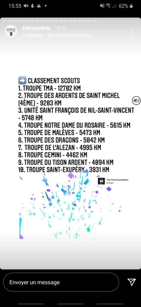 Depuis lundi, les 24h vélos battent leur plein et les scouts et les guides défendent ardemment les couleurs de l’unité. Au classement de mercredi soir, les dragons se trouvent en 6ème position !! Prêts à continuer leurs efforts pour rattraper petit à petit les troupes devant. Les guides se trouvent en 10ème position de leur classement respectif, tout aussi motivées. Afin d’affoler les compteurs au maximum, une sortie s’est organisée hier après-midi. Deux groupes ont ainsi pu avaler des kilomètres pour grapiller une place au classement. Les staffs sont super chauds continuer sur cette magnifique lancée ! Voici quelques photos des derniers exploits sportifs. Il est maintenant l’heure de remonter sur vos bécanes et de rejoindre le mouvement pour amasser un max de kilomètres !!